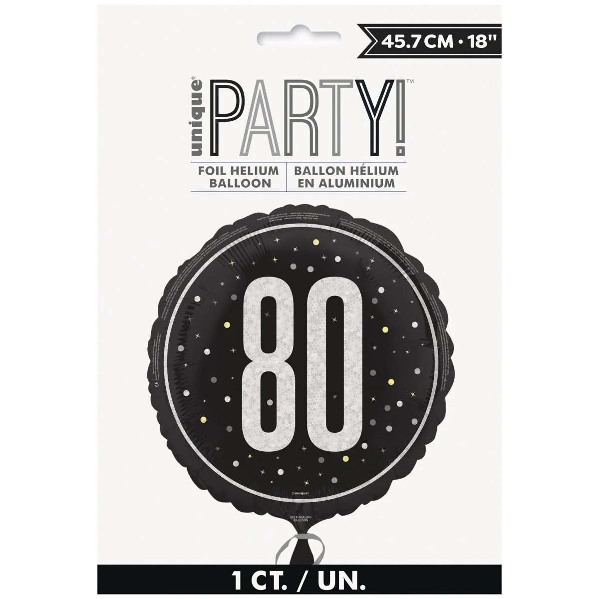 80 år Heliumballong Svart Tom 45cm