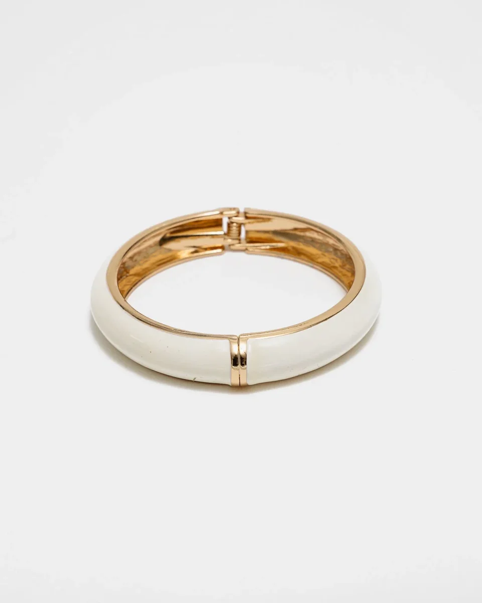 Adele-armbandet är ett 1 cm brett öppningsbart armband med guldbeläggning på insidan eller silverbeläggning i vackra färger. STORLEK: One size MATERIAL: 60 % zink, 30 % emalj, 10 % stål Nickeltestat