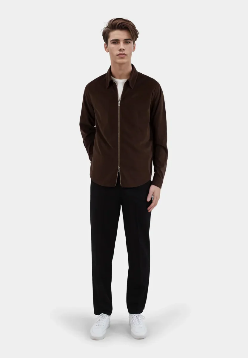 Upptäck Aden cordzip-skjortan, din nya favorit för en avslappnad men stilfull look! Tillverkad av ett ribbat baby cord-material, kommer denna skjorta att ge dig en mjuk och bekväm känsla oavsett tillfälle.