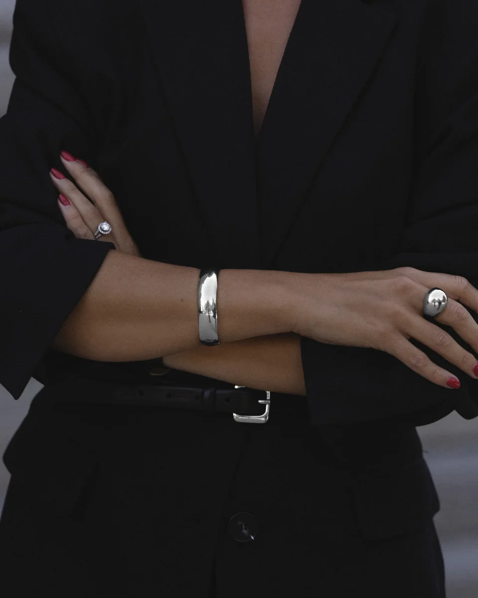 Alexandra Bangle är ett brett och polerat armband med en distinkt design – perfekt som ett statement-piece.