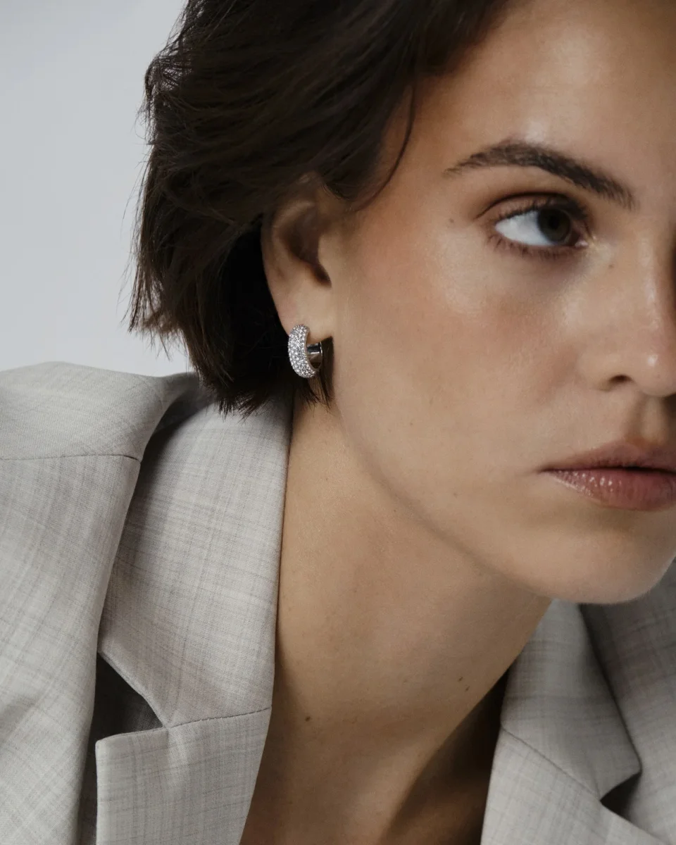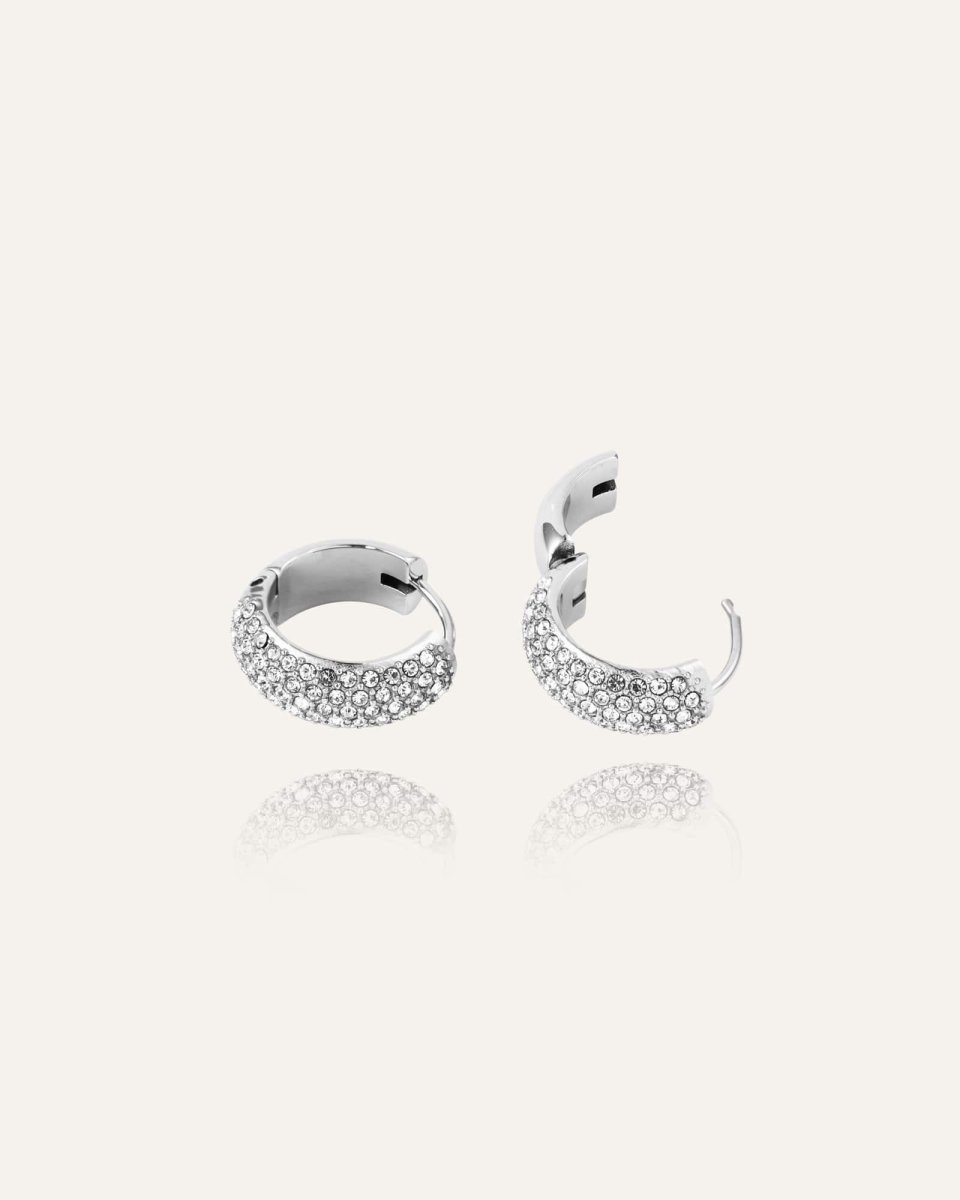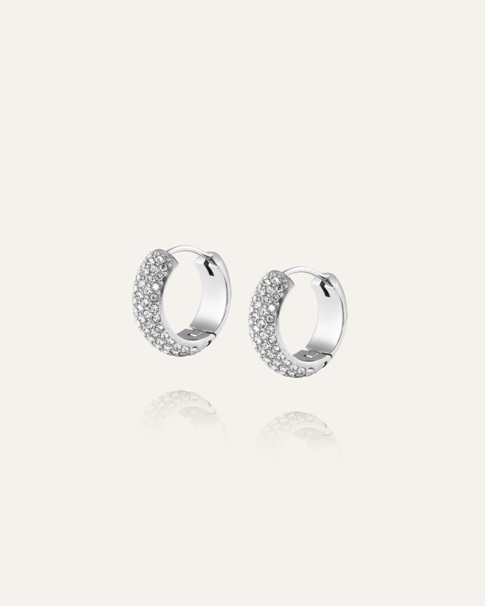 Eleganta hoops dekorerade med gnistrande Cubic zirconia-stenar. Tillverkade i massivt rostfritt stål vilket gör dem slitstarka och vattentåliga. Behåller sin färg och lyster över tid. Färg: SilverMaterial: StålSten: Vit Cubic zirconiaStorlek: 16 mm