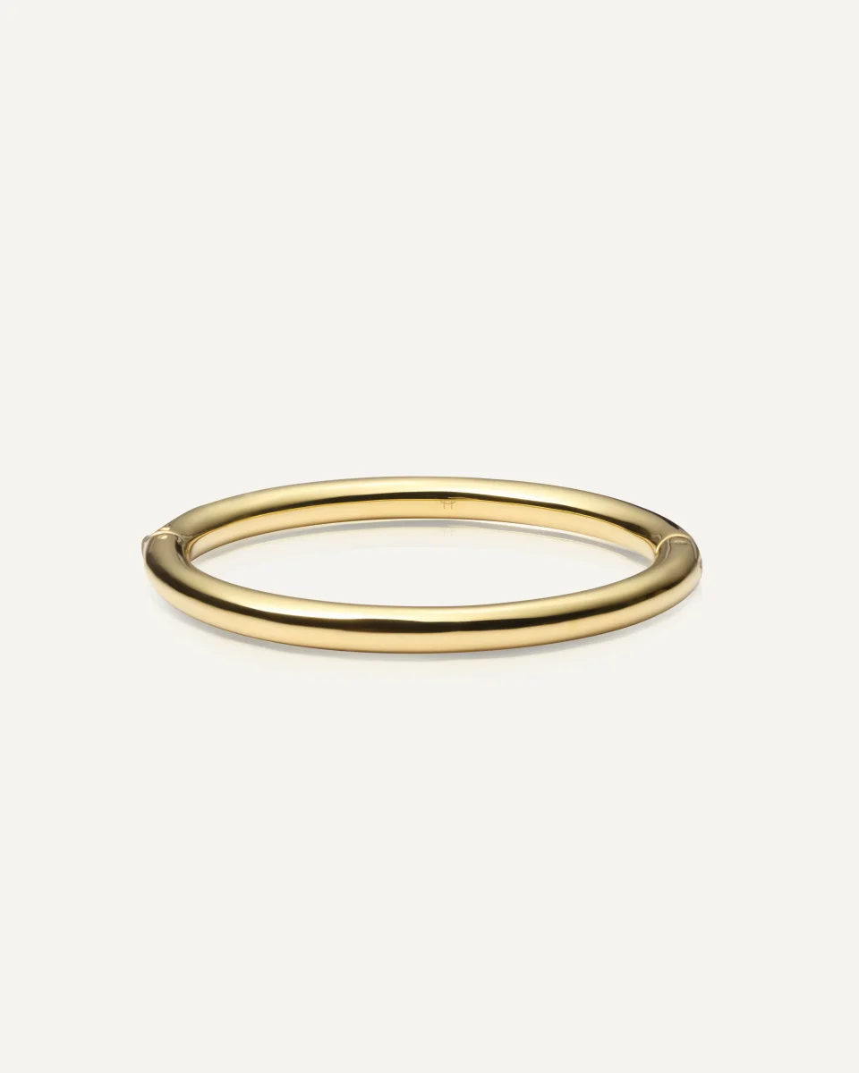 Aura Bold Bangle är ett stilrent armband med en slät, polerad och rund yta. Perfekt att bära ensam eller i kombination med andra armband. Tillverkat i rostfritt stål med 18K guld PVD-plätering är det både slitstarkt och vattentåligt, vilket gör att det behåller sin färg och lyster över tid.