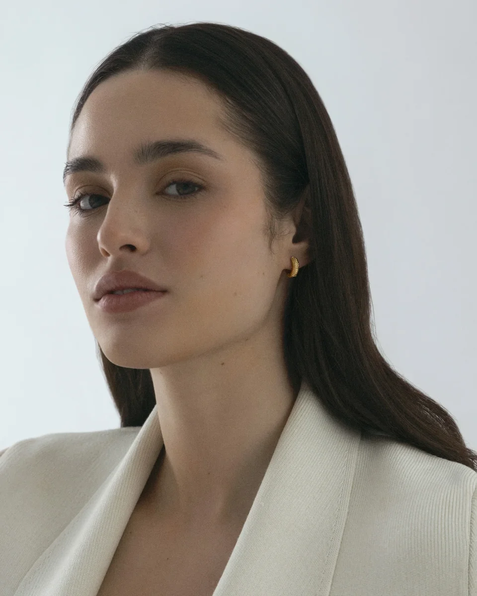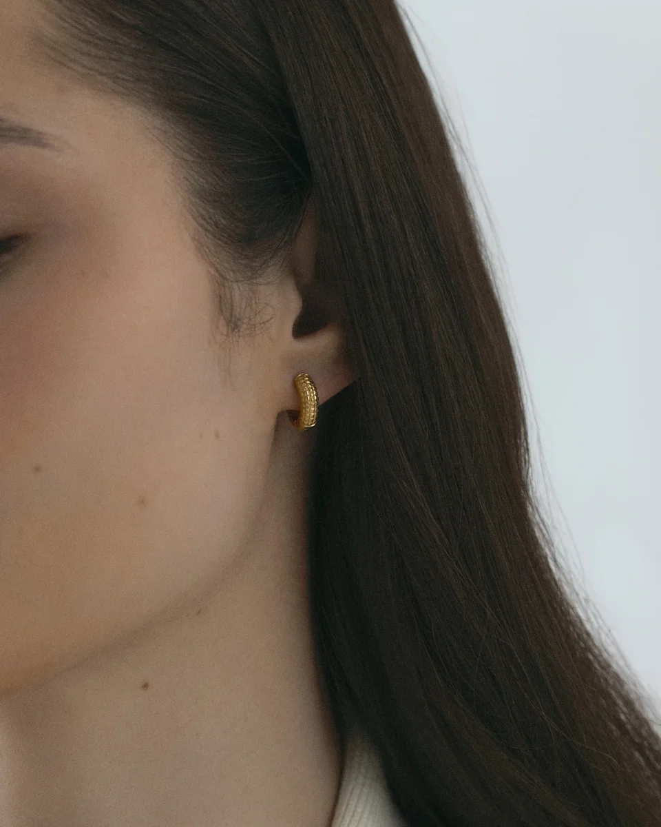 Beaded Hoops har en unik design med ett detaljerat mönster som skiljer sig från de klassiska Everyday Hoops. Tillverkade i massivt rostfritt stål och 18K guld PVD-plätering, är de slitstarka och vattentåliga, vilket gör att de behåller sin färg och stil över tid.
