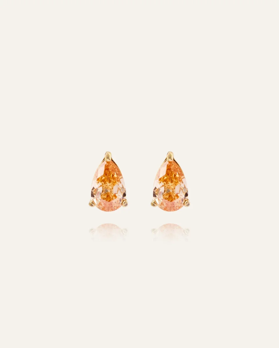 Tidlös elegans i en minimalistisk design. Belle Champagne Studs är diskreta, gnistrande örhängen med champagne-färgade, droppformade stenar. Tillverkade i rostfritt stål med 18K guld PVD-plätering är de slitstarka och vattentåliga, vilket gör att de behåller sin färg och stil över tid.