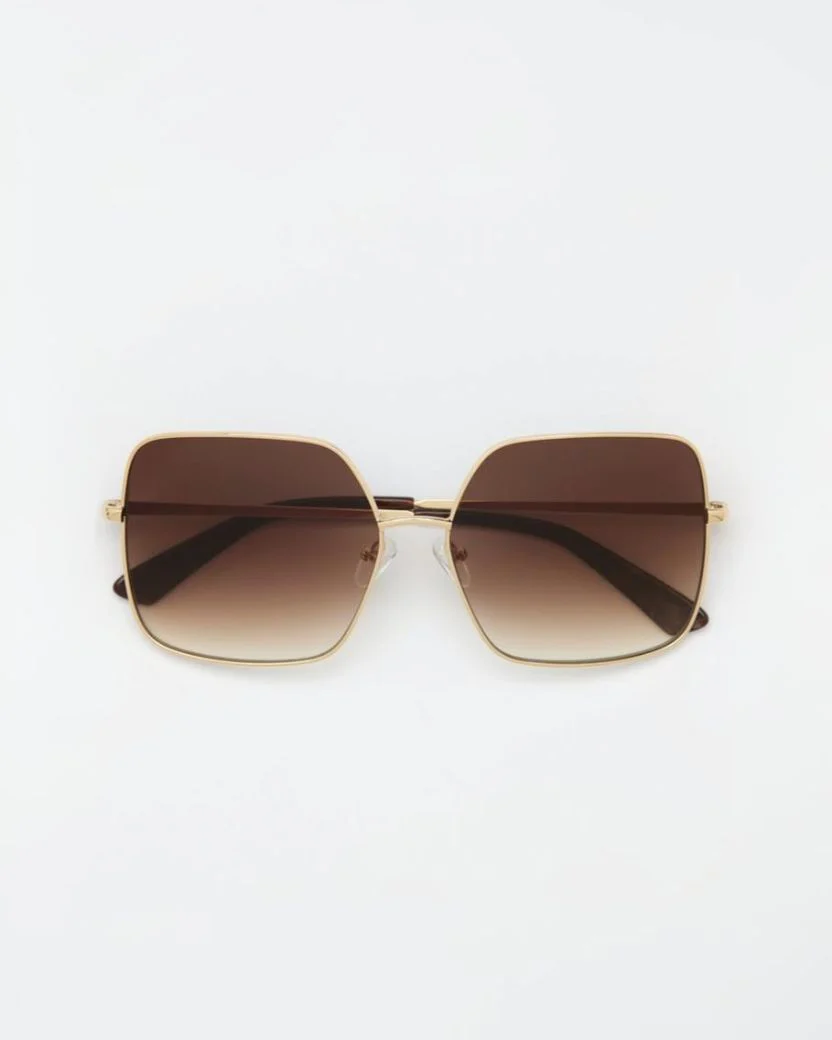 De fylliga bruntonade linserna ger utmärkt skydd medan den guldfärgade finishen ger elegans och sofistikering. Dessa solglasögon kombinerar skandinavisk design med premiummaterial för en elegant och trendig accessoar.