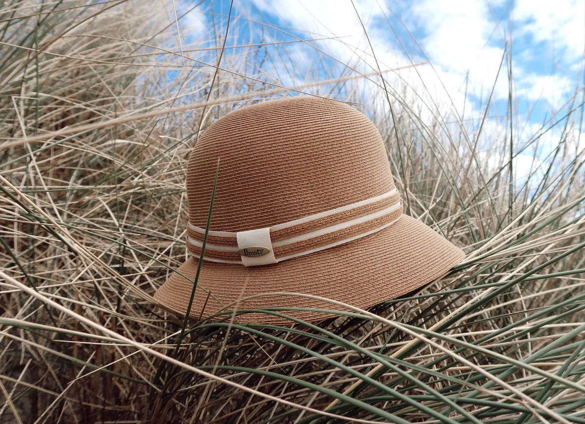 Clochehatten från Bronté är en hatt med ett mindre brätte. Storleken är justerbar vilket är bra då den kan spännas åt blåsiga dagar. Hatten är lite kortare baktill vilket är perfekt om man ska sitta och läsa eller vill ha håret uppsatt.