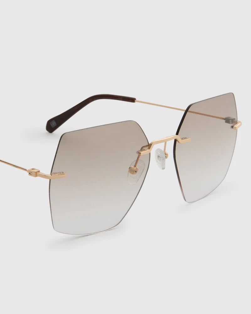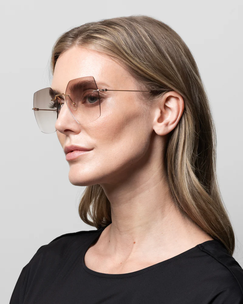 Jennifer Gold Tinted ramlösa solglasögon kombinerar minimalistisk design med diskret elegans. Deras guldtonade linser ger en varm, raffinerad glöd som framhäver din look utan distraktion. Lätta och eleganta, dessa ramlösa bågar erbjuder en sofistikerad touch samtidigt som de garanterar bekvämt bärande hela dagen. Perfekt för dig som söker modern lyx med subtil elegans.