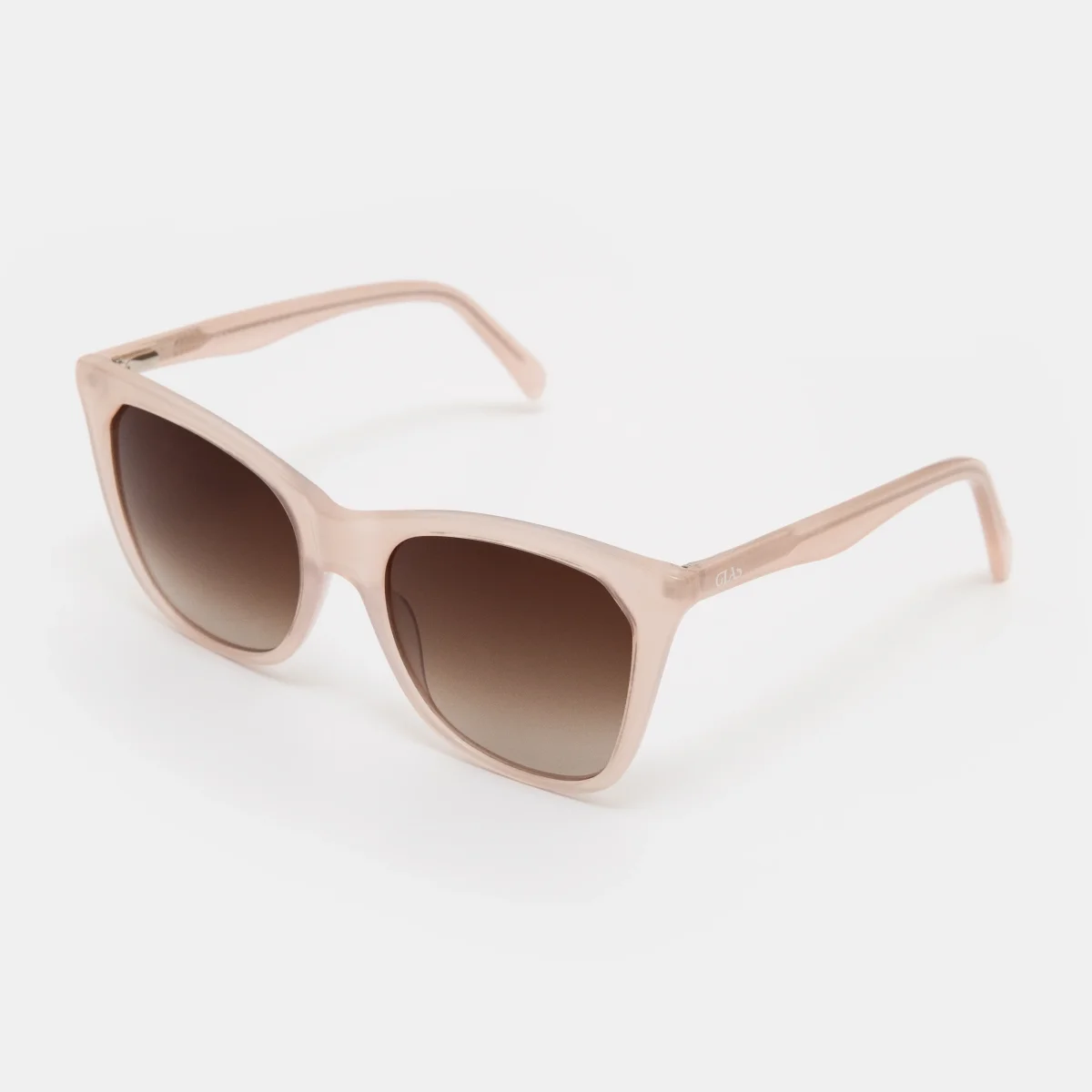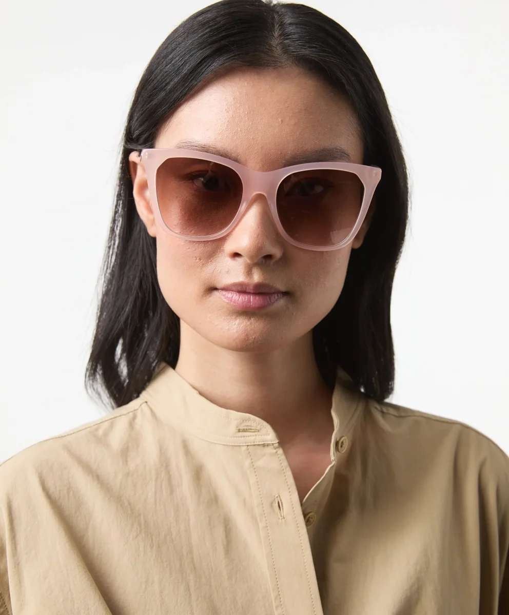 Laura Pink solglasögon blandar cat eye-mönster och klassiska fyrkantiga former i en mjuk mattrosa färg. De är designade för kvinnor som föredrar en feminin, diskret stil och ger en subtil och lekfull touch till vilken look som helst.