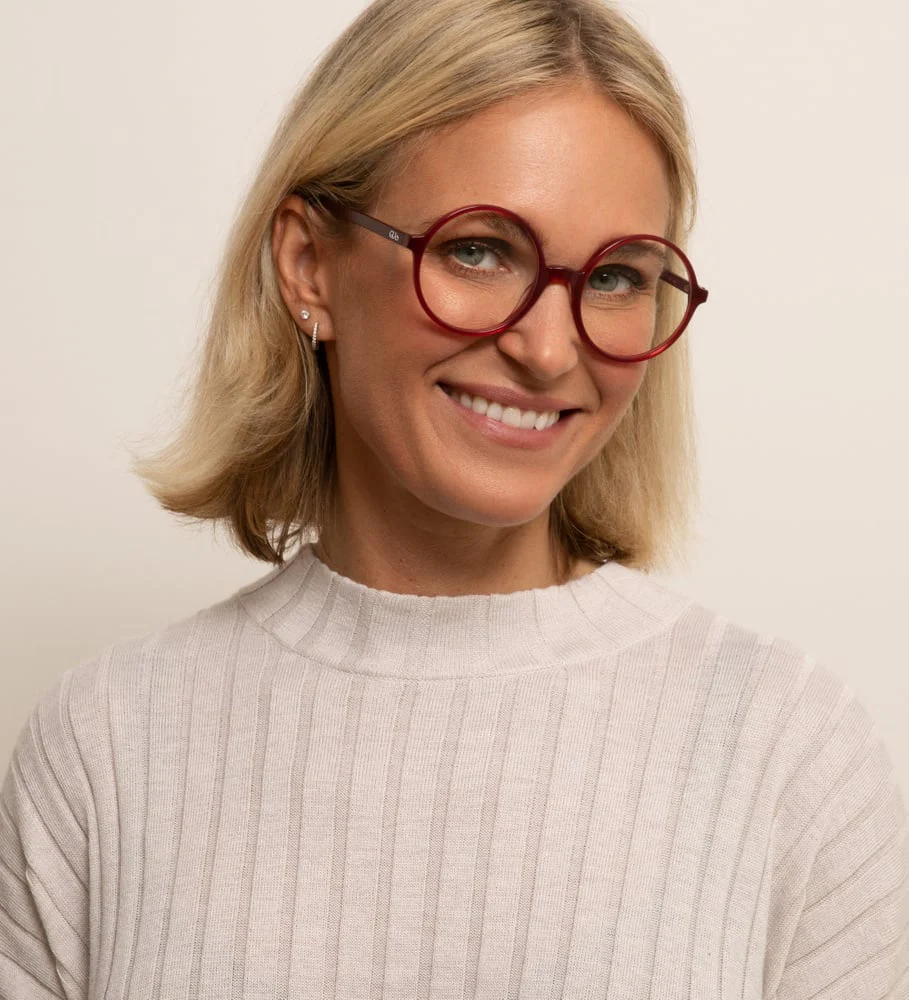 Rakel Red Readers har slående runda bågar i en djärv röd nyans, som perfekt blandar klassisk design med en touch av modern sofistikering. Dessa läsglasögon är utformade för bekväm och tydlig syn och erbjuder en elegant lösning för sofistikerat vardagsbruk.