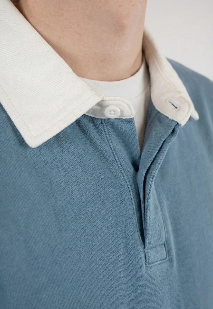 Klassisk långärmad poloskjorta i mjuk bomullsblandning som kombinerar tidlös stil med vardaglig komfort. Aqua breeze blue-färgen ger en fräsch touch till din garderob. Skjortan har en kontrastfärgad krage och diskret knappslå som förstärker den eleganta designen. Regelbunden passform med avslappnad känsla gör den perfekt för både casual och smart-casual tillfällen.
