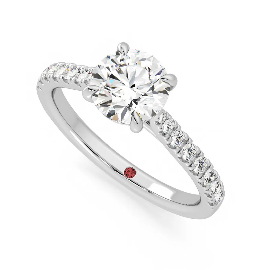 I priset ingår om du så önskar en rubin på insidan av ringen. Du kan till och med välja att sätta en annan ädelsten på insidan, kanske din partners favoritfärg eller födelsesten. Välj mellan 20 typer av ädelstenar, se mer: Signum Collection.