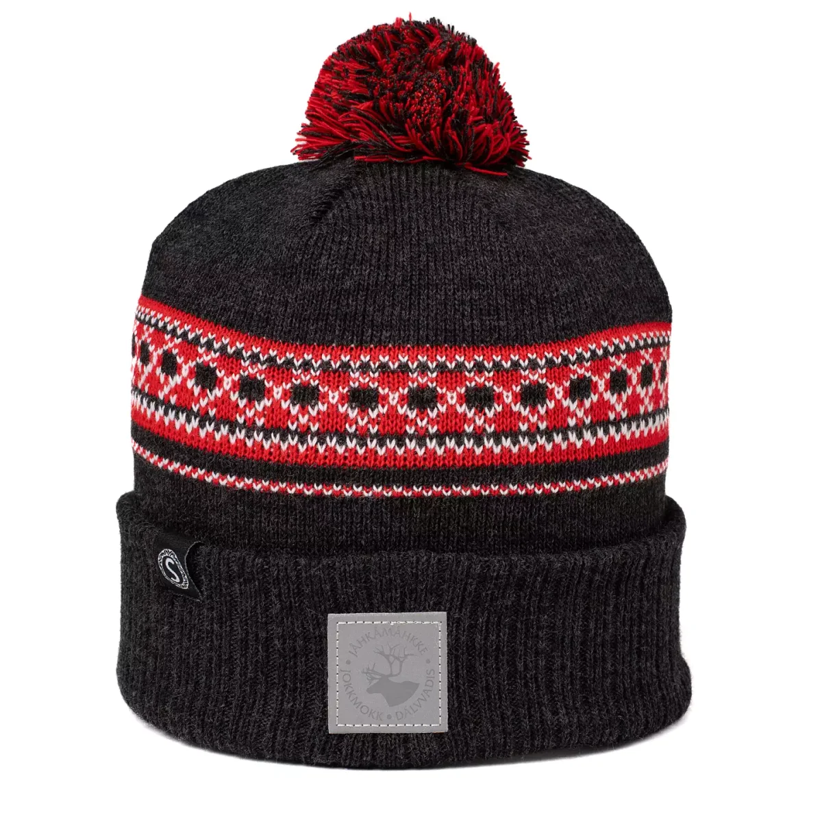 Stickad mössa från Stoorstålka med ett reflexmärke framtill, svartgrå färg med ett kontrastband i rött. Skön passform och den är mönsterstickad i två lager så den täcker öronen ordentligt även i rejäl blåst. Finns även i ljusgrått och klarblå.