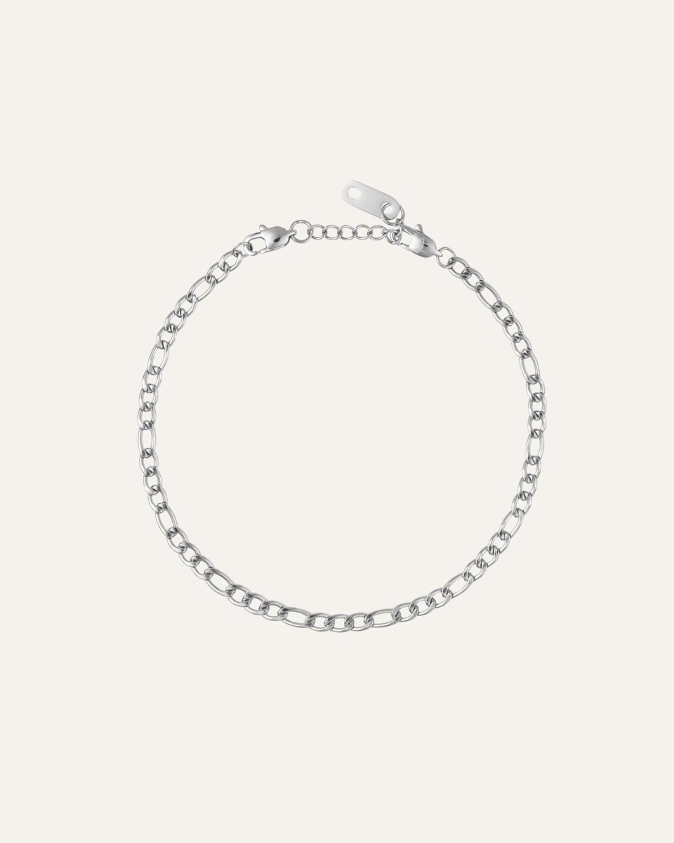 Figaro Bracelet är ett armband med en klassisk länkdesign, perfekt för alla tillfällen. Bär det ensam eller matcha med Figaro Necklace för en enhetlig stil. Tillverkat i rostfritt stål med PVD-plätering är det både slitstarkt och vattentåligt, vilket gör att det behåller sin färg och glans över tid. Förlängningskedjan kan enkelt tas av för en anpassad passform.