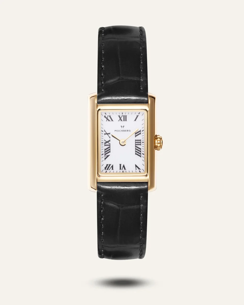 Vår bästsäljare i en ny vintageinspirerad design med ett klassiskt läderarmband. Boetten i rostfritt stål ramar in en urtavla med romerska siffror och är utrustad med ett japanskt urverk.