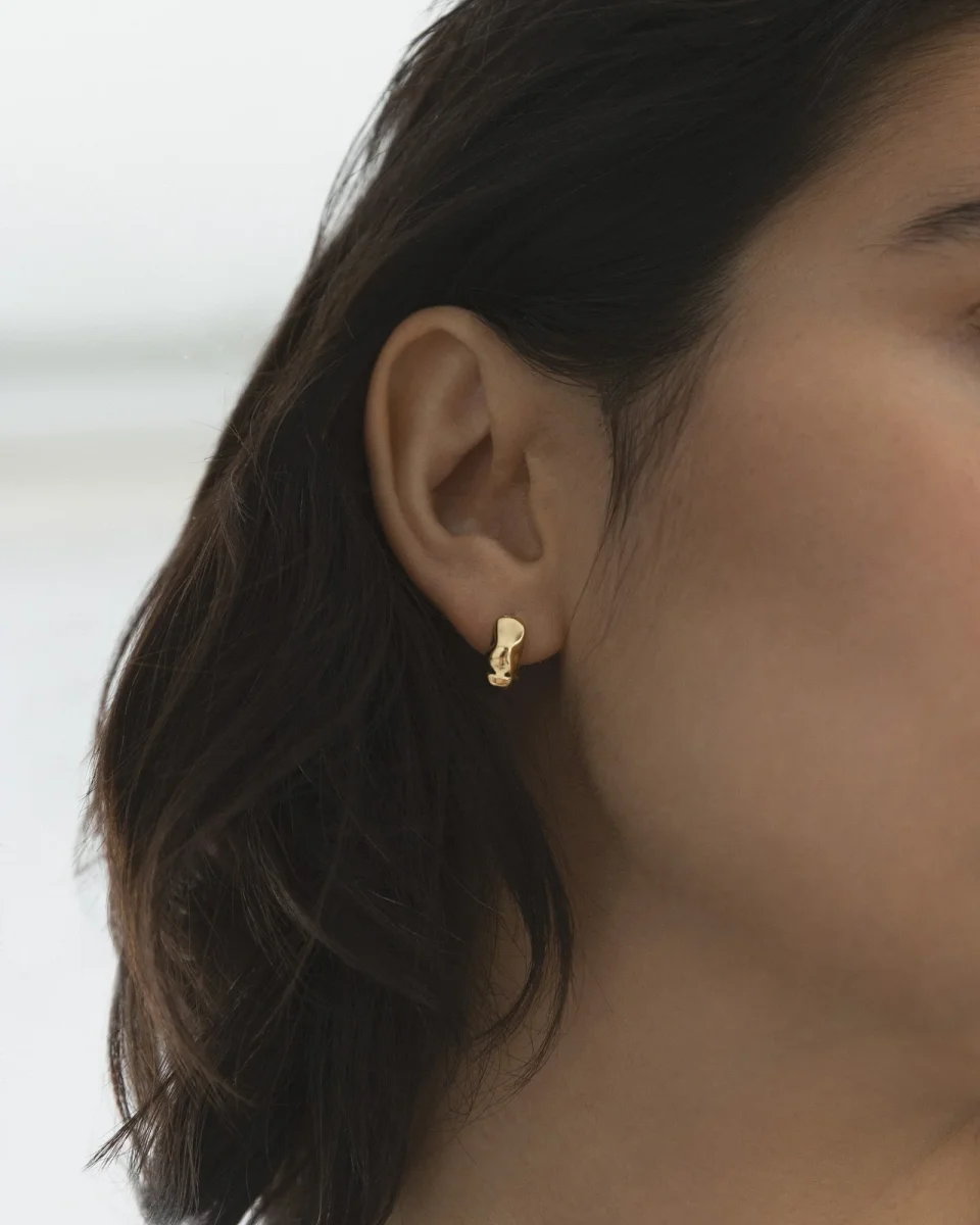 Wavy Bolded Hoops är en del av vår Wavy Collection och har en mjuk, vågig design. Dessa örhängen är tillverkade i rostfritt stål med 18K guld PVD-plätering, vilket gör dem slitstarka och vattentåliga.