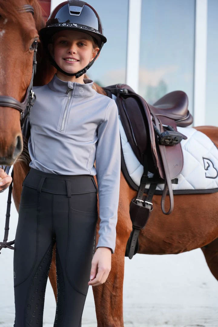 Grå långärmad ridtopp för barn i material som andas.
