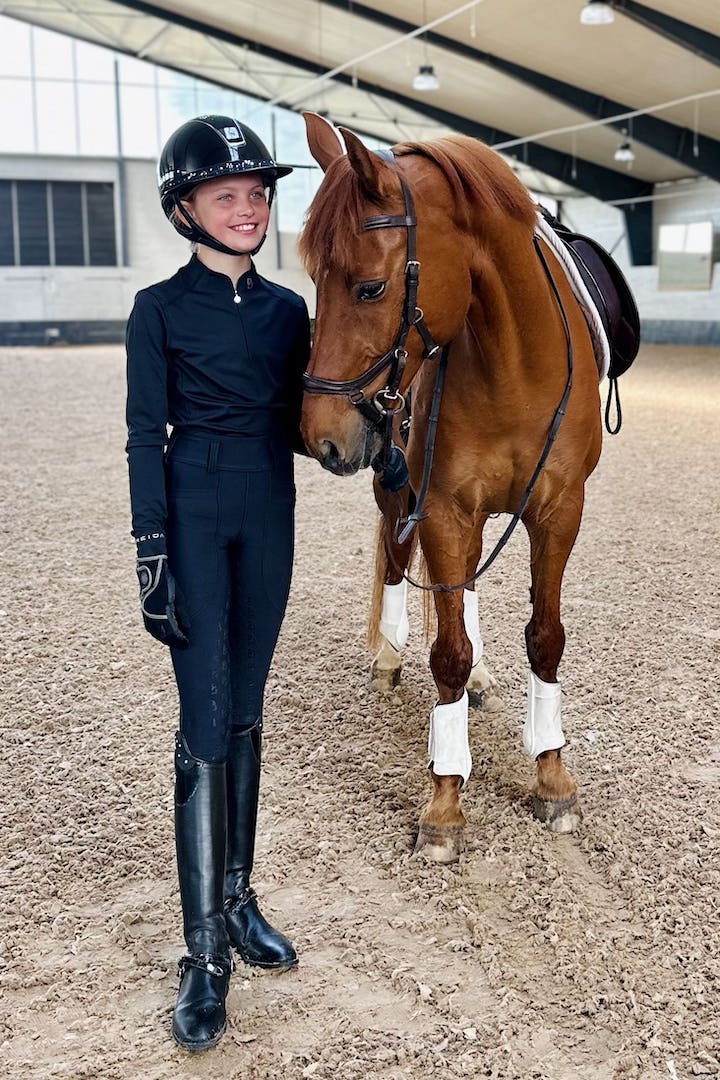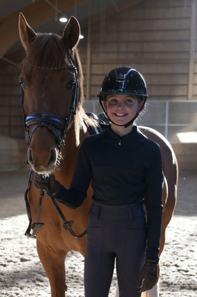 Svart långärmad ridtopp för barn designad för en elegant och diskret look.